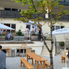 Von unserem mittig gelegenen Tisch auf das Gebäude blickend, hatte man u.a. diese Aussicht, trotz der vollen Belegung hatte man angesichts großer Abstände und des gewohnt angenehmen Garmischer Publikums nie das Gefühl, „mitten im Trubel“ zu sitzen, wir erlebten eine entspannte Atmosphäre, lediglich Sitzkissen auf den bockharten Holzbänken sollte ich am späteren Abend dann doch spürbar vermissen: