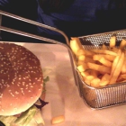 klassisch mit Cheddarkäse, aromatischen Tomaten- und Gurkenscheiben, roten Zwiebelringen und knackigem Salat, dazu McCain Pommes Frites“
