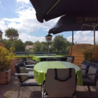 Eine nette und großzügige Terrasse gibt es ebenfalls noch und diesmal war sie sogar anständig beschirmt. Nahezu vollständig.