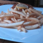 Die Kinderschnitzel mit Pommes sehe ich eher am unteren Rand was ein Lokal bieten kann. Nein, aus der Friteuse kamen diese nicht aber die Form und der Geschmack erinnerte mich doch arg an TK – Ware. Auch die Pommes kamen etwas arg blass daher, etwas mehr Würze vertragen auch Kinder, da hilft auch die Zitronenscheibe nich mehr viel, 2,5**.