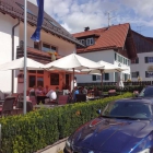 Wir saßen also gemütlich auf einer netten Terrasse und man konnte ein wenig das Treiben auf der wenig befahrenen Straße beobachten. Ein Stammtisch unter den großzügigen Sonnenschirmen war besetzt und ein zweiter füllte sich mit der Zeit mit ein paar Rentnern.