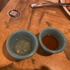 Das dazu bestellt Öl wurde mit 0,10 € für Knoblauchöl extra berechnet. Gut ist nicht viel aber das sollte doch vom Haus mit dabei sein. Viel war ja auch nicht drinnen dass man mehr verlangen könnte. In einem Schälchen gab es etwas Öl mit ein paar Knoblauchstückchen drinnen. Die Stückchen waren gleich raus gefischt, was etwas schwierig war den es gab kein Löffelchen mit dazu . Das Öl war halt neutrales Öl ohne Knoblauchgeschmack. Beim Chiliöl war kein Material vorhanden und man könnte sagen durch roten Paprika etwas eingefärbt. Das hätten wir nicht bestellen brauchen.