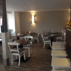 Schon beim Betreten fällt einem das angenehm luftige und freundliche Ambiente dieses Restaurants auf: Ein mittelbrauner Fußboden aus Laminat, helle weiße Wände, große Fenster mit weißen Sprossen, der Eingangsbereich mit einem dichten Vorhang gegen eintretenden Wind geschützt, schöne Wand- und Deckenleuchten, ca. 30-40 Plätze, hellbraune blanke Einzel- und Vierertische, eine kleine runde Vase und einer frischen Rose, eine kleine Flasche mit scharfer Chilisoße, die Stühle einfach und schlicht, weiß lackiert mit einer grauen Sitzauflage, auf den Fensterbänken Blumen und zwei große Edelstahllaternen mit weißen Kerzen, eine hohe braune Theke mit weißen Barhockern davor, Viele Deckenspots in der weißen Decke, ein hinterer Raum gleichfalls mit gleichem beschriebenen Mobiliar und gleicher Tischeindeckung, eine Wendeltreppe führt in das Kellergeschoß zu den „gekachelten Räumen“.