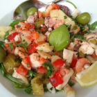Mit zwei Tellern bewaffnet ging es zurück an den Platz zu meiner Liebsten, die schon sehnsüchtig ihren Nudelteller herbeisehnte. Ich freute mich auf Frischfruchtiges aus dem Meer, das mit feinsäuerlicher Zitrus-Vinaigrette angemacht war und von Tomate, Petersilie, Fenchel und Staudensellerie ein wenig aufgepeppt wurde.