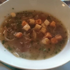 Paniertes Schnitzel vom Landschwein mit Bratkartoffeln und Salat 10,80 € am liebsten nehmen, dennoch entscheiden wir uns für den angebotenen Mittagstisch, die Pasta klang einfach zu verlockend für meine Frau. Als Vorspeise wählt sie den kleinen Salat, bei mir sollte es die Zwiebelsuppe mit den Brotwürfeln sein. Beide Vorspeisen kosteten 2 Euro. Als Hauptgang dann die Penne für meine Frau, ich entschied mich für das Cordon Blue mit Kartoffeln (jeweils 6,50). zu trinken sollte es bei mir ein Paulaner Hefebier sein, getreu dem Motto, ich trinke nur Hefebier an Tagen die auf "g" enden - und Geburtstag endet auf "g" ;-)