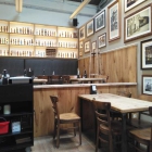 Durch die Eingangshalle mit der beeindruckenden Schiefertafel, die eine gelungene Übersicht über die verschiedenen Malze, Hopfenarten und Biersorten bietet, gelangt man in das rustikal eingerichtete, hallenartige Brauereigasthaus. Erster Blickfang zur Linken: der imposante Thekenbereich mit den glänzenden Alutanks in Hochlage. Aus ihnen fließt das handwerklich Gehopfte nach unten in die Zapfanlage. Mit derbem Holzmobiliar und erdigem Parkettboden rückt man dem Flair des Zünftigen zu Leibe. Wäre die Dimension etwas kleiner und die Decken nicht gar so hoch, würde sich sogar Gemütlichkeit einstellen. Zumindest nach dem ersten Pale Ale.