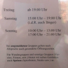 Laut Aushang ist freitags - sonntags geöffnet und der Wanderer hat Gelegenheit seinen Durst zu löschen.