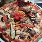 Auch die Pizza wird schnell gebracht. Die Vegetaria macht optisch erst einmal einen guten Eindruck, reichhaltig belegt mit leicht grilliertem Gemüse, der Rand leicht knusprig und schmackhaft, der übrige Teig leider nicht gut durchgebacken und sehr weich, so vermute ich, dass der Ofen noch nicht richtig vorgeheizt war.