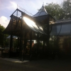 Im Haupthaus kann man auch oben auf der Galerie sitzen, freundliche junge Damen und Herren servieren Kaffee und Kuchen, oder auch Tee. Ein Kännchen kostet 3,80 €, ein Stück Torte 3,50 €.