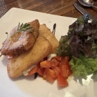Zur Hauptspeise wählte Männe Schollenfilets,zu 21,20 Euro.