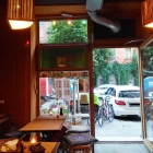 Gerade mal 15 Personen finden im winzigen Gastraum Platz. Und diese sitzen ziemlich dicht beieinander. Den vorherrschenden Platzmangel und die damit verbundene Enge empfanden wir dennoch nicht als störend. Im Gegenteil: die zwanglose Wohlfühlatmosphäre lässt einen schnell ankommen. Am Besuchsabend wurden noch ein oder zwei Tische zusätzlich vor dem Lokal platziert. Das warme Sommerwetter lockte nach draußen. Vielleicht war das auch der Grund, warum wir unangemeldet noch einen der wenigen freien Plätze im Inneren ergattern konnten.