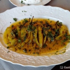 Was aber sein muß: es darf gerne nach Metaxa schmecken. Unterm Strich war es eine sehr tomatige Soße die, es zog sich durch wie ein roter Faden, ebenfalls nur schwach gewürzt war. Recht geschlechtsneutral. Irgendwie weder Fisch noch Fleisch.