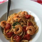 Danach gab’s hausgemachte Spagetti al Limone mit "Shrimps" (typisch italienische Falschbezeichnung für Garnelen). Die Garnelen sehr frisch und entdarmt, die Spagetti perfekt al dente, die Kirschtomaten leider nicht enthäutet. Die Zitronensoße ein Genuss.