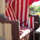 Das Restaurant verfügt über 50 Plätze im Gastraum, 80 Plätze im Nebenraum (der besonders für Feiern aller Art geeignet ist) und einen Biergarten mit 150 Plätzen. Besonders schön finde ich die Strandkörbe. Herrlich, dieser Biergarten verleiht sofort Urlaubsgefühle! Bei 29°C im Schatten schmeckt das kühle isotonische Licher alkoholfrei ebenso wie der Gingerale. Beim Studieren der Karte kam uns der Gedanke, mit unserem bevorstehendem Verwandtschaftsbesuch aus Hamburg mal hier einzukehren. Wer vermutet schon einen solchen Ostsee-Flair in Nordhessen? Anschließend gönnten wir uns noch 2 Kaffee und eine hausgemachte Waffel mit Sahne und einer Kugel Vanilleeis. Letzteres durfte ich aufgrund meiner Unverträglichkeiten wieder nur mit den Augen kosten, aber ich habe mir versichern lassen, dass es köstlich gewesen sei. Am Nachbartisch gab es Smoker-Braten, mit Rosmarinkartoffeln und Speckkrautsalat und Tzatziki für 7,50€. Das sah richtig gut aus!