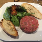 Zu meinen Wildkräutersalat gab es dann ein tadelloses Tartar vom Charolaisrind. Perfekt abgeschmeckt mit Kapern, Gurken und Zwiebeln, sowie einem Hauch Worcestersauce. Lecker und guter Start für beide ins Abendessen.