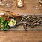 Inzwischen hatten wir auch die Speisenwahl getroffen. Bei der Vorspeise waren wir uns einig, Sardinen mit Sauce Rouille und frisch gebackenen Fougasse sollte es für Beide sein. In der Wartezeit beobachtete ich das Küchengeschehen. Das Tema in der Küche harmoniert. Ruhig werden die Bestellungen abgearbeitet. So dauerte es nicht lange bis wir unsere Teller erhielten