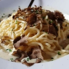 Auch die Pasta ist komplett überteuert. Im Grunde war es eine "aglio e olio" mit Chilisoße. Diese bekommt man schon für 8,50 mit selbstgemachten Nudeln z.B. in Saarbrücken am St. JohannerMarkt. Mit der Chilisoße hätte ich meinetwegen 9,50 als angemessen empfunden. Auch 2 Euro für Kräuterbutter extra zu veranschlagen empfinde ich als heftig. 50 Cent von mir aus noch 1 Euro sind mir bekannte Aufschläge, wenn überhaupt.