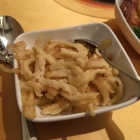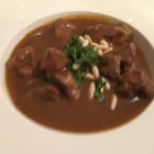 Gulasch vom Lamm, Bio-Qualität wurde in der Karte verkündet. Verzeihung für die schlechte Fotoqualität. Das war ein ordentlich geschmortes Gericht. Das Fleisch sehr zart, aber auch sehr zurückhaltend in seinen Aromen. Für ein Lammgericht mir fast zu sanft. Obenauf ein paar Pinienkerne, die Beilagen kamen separat auf den Tisch.