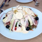 Mit den Blattsalaten, Käse- und Schinkenstreifen der sehr ansprechenden Art, Artischocken, Ei, Tomaten und Oliven (habe ich was vergessen?) war er nicht nur qualitativ, sondern auch quantitativ ein ordentliches Teil!