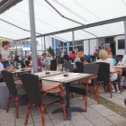 Derer gab es am Rande der sehr großzügigen und komplett mit Markisen beschirmten Terrasse zur freien Wahl.