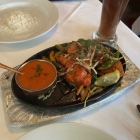 Das Tandoor Hühnchengericht kam rauchend heiß auf einer Gußplatte an den Tisch. Oben drauf gab es etwas frischen Koriander, Weißkraut-und Zwiebelstreifen. Es gab vier große Stückchen vom Hähnchen das super saftig war und klasse abgeschmeckt und gewürzt worden. Die Soße dazu war irgendwie auf Tomaten / Linsen Basis gemacht und schmeckte auch toll würzig . Das Gemüse bestand aus Brokkoli, Zucchini, verschiedenen Farben von Paprika, Zwiebeln, Gelberüben und Auberginen. Alles auf den Punkt mit noch leichten Biss gegart. Es war sehr schmackhaft und wir denken dass sie es vorher eingelegt hatten für den Geschmack. War sehr lecker.