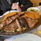Fangen wir mal an – zwei Schnitzel die knusprig und nicht fettig gebraten worden sind. Die Panierung einwandfrei und sie waren zart und saftig. Genauso wie die zwei Nackensteack. Es war nicht zu fettig und durchwachsen und schön gewürzt worden. Bei den beiden Spießen denken wir mal war es das gleiche Fleisch. Schön angebraten mit leichten Röstaromen und überhaupt nicht trocken sondern eher in zart rosa gebraten. Das waren die beiden Stücke Leber auch. Das hat uns sehr gefallen, meistens wird sie immer ganz durch serviert. Die beiden Cevapcici waren von einer schönen festeren Konsistenz. Schön gewürzt, wegen uns dürfte es mehr Knoblauch sein, aber viele mögen das ja schon wieder nicht mehr. Die beiden Hacksteacks etwas fluffiger aber doch fest in der Konsistenz. Klasse gewürzt und mit Kräutern noch verfeinert worden, schmeckte uns sehr gut. Die Fleischstücke alle super Klasse gebraten und auch noch saftig. Vom würzen her gab es nichts zu meckern. Wir waren super zufrieden nur durch den Salatmüssen wir einen halben Stern abziehen. 4,5 Sterne.
