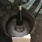 Wir hatten im Sinn, mit einem Weißwein zu starten und mir wurde ein feinherber Riesling vom Schloss Lieser / Thomas Haag ans Herz gelegt, Brauneberger Riesling 2014. Ein Probeschluck ließ uns nicken und schwupps war ein großer Blecheimer mit Eis neben dem Tisch auf dem Boden platziert.
