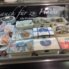 Da sitzt man sehr angenehm, kommt mit den Sitznachbarn ins Gespräch und schaut dem Team beim Zubereiten von verschiedenen Meeresfrüchten zu. Zu Kaviar und Lachs gesellen sich Austern in sehr vielen Qualitäten, Fischsuppe, Räucherwaren, Muscheln, Hummer, Krabben, Krebse, es sollte sich was finden für jeden. Natürlich will man seine Hauptprodukte an Frau/ Mann bringen und weißt diskret darauf hin.