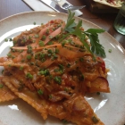Zitat: "riesig, jedoch sehr dünn, so dass der Fammkuchen gut zu schaffen war. Insgesamt sehr salzig durch den Speck. Ich musste viel trinken und hatte noch Stunden danach das Gefühl des Verdurstens".