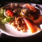 Wir hatten danach wieder Buffet, und wenn auch die Bilder nur einen kleinen Ausschnitt für die 45 Gäste zeigen, es war ausreichend da, auf Bilder der warmen Fleisch- und Fischspeisen habe ich verzichtet, ich werde nach der Suppe schon von den leckeren Nordseekrabben, Lachs, Matjes, Forelle und Rotgarnelen satt.