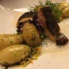 Weiter ging es mit Fisch, auch passend zum gewählten Wein. Auf der Tageskarte wurde angeboten: Auf der Haut gebratenes Wallerfilet mit Wurzelgemüse / Dillkartoffeln / Meerrettichschaum