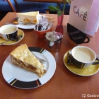 Also nahmen wir ein Stück Apfelkuchen und ein Stück Käsekuchen zusammen mit je einer Tasse Kaffee, wohl zum ersten Mal seit über dreißig Jahren.