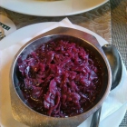 Zuerst der Rinderbraten, siehe Bild oben. Nach dem Vernehmen gut und ordentlich abgeschmeckt, das Rotkraut ebenso. Der Kloß fest und mit "Bröckerla" gefüllt, leider war die Sauce nur lauwarm.