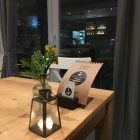 Mit verschiedenen Details wird versucht, das Ambiente einer Wohnküche zu vermitteln; wie ich finde, recht erfolgreich. Schön fand ich die Musikauswahl, die durch etliche Langspielplatten (Die Jüngeren googeln, bitte.) der Siebziger und Achtziger angekündigt wurde. Zur lebendigen Atmosphäre tragen sicher auch die Gespräche der jungen Küchenjungs bei, die teilweise mit im Service agieren. Alles ungekünstelt, aber freundlich. Weder übertriebene Coolness, noch unangemessene Kumpelhaftigkeit. Der Service wurde im Wesentlichen von einem der auch nur etwas älteren Inhaber professionell gewuppt, dabei blieb er auch an den anderen Tischen gern für einen Schwatz stehen, ohne Wartezeiten entstehen zu lassen. Auf meine Bitte, die Karaffe Leitungswasser am Tisch stehen zu lassen, kündigte er selbstbewusst jederzeitiges Nachschenken an und hielt dieses Versprechen. Als er zeitweilig zu einem Handwerkertermin nach Hause gerufen wurde, übernahm sein Kompagnon, der bis ins letzte Jahr als Küchenchef im Esszimmer tätig war, jetzt aber das Zweitlokal Cho & Riso managt, eine Tapas- und Cocktailbar am anderen Ende der Innenstadt. Da er auch Sommelier des Hauses war, konnten wir erfreulicherweise schon viele meiner „kleinen Wünsche“ klären. Schön, dass dazu auch eine Auswahl aus dem überraschend eigenständigen Tapas-Angebot (s. Homepage Cho&Riso) gehört, ebenso eine spannende Negroni-Variante zur Begrüßung. Schade, dass die Bar bei unserem Besuch geschlossen ist; dort wäre ich gern versackt...