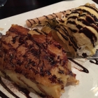 Nun wollte ich es aber wissen. Viele haben ja Galaktoburiko auf der Karte, haben es aber meist nicht da, weil es zu selten bestellt wird. Ein großer Fehler, es nicht zu bestellen. Und sie hatten es nicht nur auf der Karte, sondern brachten es auch schön angemacht mit Eis und Sahne an den Tisch. Für den Unkundigen: im Prinzip ein Blätterteigkuchen, mit viel Grieß, Butter, Vanille. Richtig gut und leider sättigend. Da es aber keiner am Tisch kannte, blieb mir ein kleiner Anteil, so dass wir dann noch den Halvas ( Honigkuchen ) bestellten, ebenso schwer und sämig, hier auch mit Mandeln und Zimt. Und dazu einen Sumpf! s.o.