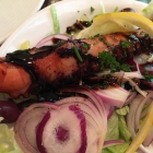 Schon als die Vorspeisen kamen, war ich sicher, hier gut aufgehoben zu sein. Frisch, knackig, mit tollem Geschmack die gemischte Platte. Dazu Knoblauchbrot und Weißbrot für die verschiedenen Pasten. Da fühlte ich mich wie bei meinen griechischen Freunden auf der Terrasse, mit jedem Bissen holte ich mir Erinnerung und mediterrane Lebensfreude. Überraschend gut auch der Oktopussalat. Hier lag ein feines Stück gegrillter Oktopus auf Salat, also besser als erwartet. Ein Genuss.