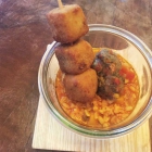 Als nächstes: Dreierlei Knödel, Spinat, Egerlinge "3 Käse hoch " - Käsknödel kämpft um Vorherrschaft gegen Pilzknödel mit eingelegten Champignons und Spinatgelee. Möge der Bessere gewinnen! - Uns hat das ganze Weckglas nicht enttäuscht, alle 3 Knödel sind für uns der klare Sieger - einer besser als der andere. Das Highlight sicherlich das klebrige Spinatgelee, Erinnerungen werden an Christian Krüger (Axt in Mannheim) wach, als er uns ein "Überraschungsei" mit einer Spinatgelee/Algen Matratze quasi als "pre" Zwischengang servierte.