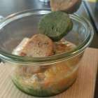 Die Portionen sind bis hierher bereits gut sättigend gewesen. Man darf sich nicht davon verleiten lassen zu glauben, es handele sich um Weckgläschen. Es sind schon recht ausgewachsene Gläser mit ordentlichem Fassungsvermögen, so dass drei Gläser pro Person absolut ausreichend sind. Daher stellen die Desserts jetzt durchaus eine gewisse Herausforderung an den Appetit dar.