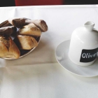Ok, jetzt ergab auch das Olivenöl Sinn. Ich weiß nicht, ob es so richtig gemacht wird, aber ich träufelte Olivenöl in ein kleines bereitgestelltes Tellerchen und gab nach einer ersten Probe noch aus der Pfeffermühle und der (Meer-) Salzmühle (Sel de Ibiza, keine Ahnung ob das was Besonderes ist) dazu. Die Brötchen, darin eingetunkt schmeckten ausgesprochen gut und würzig und machten Lust auf mehr.