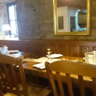 Neben einer lustigen kleinen Gesellschaft dürfen wir nehmen. Es ist gemütlich, rustikal und gepflegt. Viel Stein, viel Holz und Gebälk, Stühle mit Korbgeflecht und Bänke an den dicken Bruchsteinwänden. Es ist dezent weihnachtlich dekoriert.