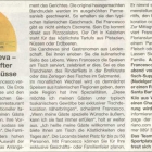 Der Eingang zur barrierefreien Locanda San Floriano, die vorher Florian Stuben geheißen haben liegt etwas versteckt auf der von der Straße abgewandten Seite des Hauses. Beherzt durch den etwas dunklen Eingangsbereich, sogleich eröffnet sich der Restaurantbereich mit den bemalten Decken eine sehr gemütliche Gaststube. Die Tische sind mit Stoffdecken und Stoffservietten eingedeckt, ein stilvoller Anblick. Wir durften uns einen Platz aussuchen und wurden von Signore Francesco an den Tisch geleitet. Der Kinderstuhl für unsere kleine Begleiterin kommt sofort und schon haben wir die Speisekarten in den Händen. Mit den Getränken Weißbier € 3,90, Fanta €2,60, San Pellegrino 0,5l € 4,50, Johannisbeerschorle € 3,80 und einem Viertel Ciro Rosso Riserva Duca San Felice 2010 € 9,00 kommt auch der obligatorische Brotkorb. Die bestellten Gerichte, sehr gute Bruschette miste € 4,50, teils mit Tomate und teils mit Thunfisch schmecken ausgezeichnet  und das Vitello Tonnato sind sehr appetitlich angerichtet und schmecken ebenfalls sehr gut, die Thunfischmayonaise könnte noch etwas dickflüssiger sein. Danach kommt eine Pizza Salami €7,00 die sehr gut geschmeckt hat, außen weich und innen knusprig, so wie wir das mögen. Die beiden Teller der hausgemachten Linguine mit Artischocken und Parmaschinken schmecken gar köstlich. Die Nudeln frisch gemacht und dass der Sugo, auch nur mit wenig Sahne verfeinert sehr gut schmecken kann, bringt uns etwas näher zum Küchenverständnis der Locanda  San Floriano. Zum Nachtisch noch eine Zuppa Inglese € 7.50 in sehr kreativer Anrichteweise, das schmeckt auch sehr gut. Wir sind sehr zufrieden, zumal ein Gang zur Toilette das positive Gesamterlebnis bestätigt. Unser Fazit: eine Locanda, die dem Gast die Gelegenheit gibt sehr gut zu essen, ohne Hektik und Stress, so wie die Italiener im Süden das zelebrieren. Das ist kein Platz für eine schnelle Pizza, uns gefällt es besser so und wir kommen sehr gerne wieder.