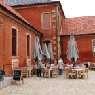 Wohl erst vor Kurzem wurde die Brasserie eröffnet. Innen modern, gradlinig. Aber nicht störend in dem historischen Gebäude. Außen schöne Holzbestuhlung.