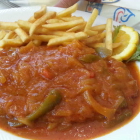 Zum Essen hatten wir ein Tagesgericht Nudel mit Pilzen zu 6,50€, Gebackener Schafskäse als Vorspeise zu 6,00€, Grillteller zu 11,90 €, Medaillons vom Schwein zu 14,20 €, Jäger – u. Paprikaschnitzel zu je 10,50 € sowie Leber vom Grill zu 9,80 €. Zu jeder Hauptspeise gehörte ein kleiner Beilagen Salat – gemischter Salat mit Tomaten – u. Gurkenstückchen, Kraut u. Karottensalat und einem Joghurtdressing.