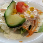 Zum Essen hatten wir ein Tagesgericht Nudel mit Pilzen zu 6,50€, Gebackener Schafskäse als Vorspeise zu 6,00€, Grillteller zu 11,90 €, Medaillons vom Schwein zu 14,20 €, Jäger – u. Paprikaschnitzel zu je 10,50 € sowie Leber vom Grill zu 9,80 €. Zu jeder Hauptspeise gehörte ein kleiner Beilagen Salat – gemischter Salat mit Tomaten – u. Gurkenstückchen, Kraut u. Karottensalat und einem Joghurtdressing.