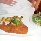 Zum Essen bestellte meine Frau das "Thunfisch-Carpaccio" (EUR 9,00) und als Hauptgericht das "Original Wiener Schnitzel mit Kartoffeln und Beilagensalat" (EUR 17,90). Ich verzichtete auf eine Vorspeise und wählte als Hauptgericht "1/2 knusprige junge Ente mit Kartoffelspalten" (EUR 16,20), obwohl ich erst tags zuvor in Nonnenhorn eine halbe Wildente verzehrt hatte. Irgendwie hat es die Küche des "Augustin" mit der Beerendeko; lediglich beim Gruß aus der Küche fehlte sie, ansonsten "zierte" überflüssigerweise je ein rotes und ein schwärzliches Beerchen (also Him- bzw. Brombeere) das Capaccio, das Wiener Schnitzel und die halbe Ente. Ich mag solchen Pipifaxkram nicht. Das war aber auch das einzig Störende; alle anderen Gerichte waren wirklich sehr gut, angefangen beim äusserst pikanten Thunfisch-Carpaccio, dem auf den Punkt gegarten Kalbsschnitzel (sind es im Original nicht zwei?) bis hin zu der wirklich famosen Ente. Ich, ansonsten Fan der Nonnenhorner Kapellen-Wildenten in jeglicher Zubereitungsform, muss den diesjährigen Urlaubs-Enten-Pokal, so es denn einen gäbe, der "Augustin-Ente" zugestehen; da führt kein Weg dran vorbei. Alle Achtung, ein solch perfekt zubereitetes Federvieh hätte ich dem "Augustin" nicht zugetraut gehabt; wäre ich nicht schon gut gesättigt gewesen, hätte ich gerne noch eine weitere Hälfte verdrückt. "Augustin", wir kommen wieder! Bis dahin vergebe ich viereinhalb Sterne für den bereich Essen und das Altbayrisch Dunkel.