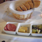 Essen und Trinken: Meine Frau trank vorab einen Aperol Secco (0,1l EUR 4,80) und zum Essen ein kleines Meckatzer Weiss-Gold (0,3l EUR 2,30). Angesichts der beiden vorausgegangenen "Weinpleiten" verzichtete ich diesmal ganz auf Wein und hielt mich an Meckatzer Urweizen "Alt-Bayrisch Dunkel" (EUR 3,80 für 0,5l), eine durchaus gute Wahl.