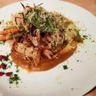 Konstante der Küche: Wieder ordentlich und übersichtlich angerichtet. Die Teller dieses Mal nicht eiskalt, aber auch nur zimmerwarm. Lauwarm, die schnell abkühlende Mehlmasse. Spätzle? Kaum erkennbar. Da fehlte es an Konsistenz, Struktur und Geschmack.