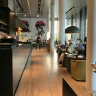 So spazierten wir denn frohgemut, Sol Gabetta und Simon Rattles Londoner Symphoniker in unseren Gehörgängen leise nachhallend, die paar Meter ins schräg gegenüberliegende Hotel Roomers, dessen Erdgeschoss das Moriki zu einem nicht kleinen Teil ausfüllt. An dieser Stelle lege ich allen Leserinnen und Lesern MarcOs Bewertung ans Herz, in der er das Restaurant ausführlich und mit viel Hintergrundwissen beschrieben hat; seitdem hat sich, zumindest was das Erscheinungsbild angeht, nicht viel geändert.