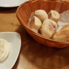 Und wenig später warme Pizzabrötchen und frisch aufgeschlagene Butter.