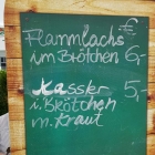 Ich entdeckte das Angebot des Flammlachs im Brötchen. Frisch belegt wurde mein Brötchen mit Krautsalat und reichlich Flammlachs. Der Lachs schön saftig, der Krautsalat erfrischend dazu.